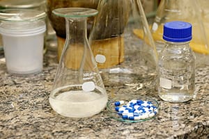 Detalhe de cápsulas de fosfoetanolamina sintética no Instituto de Química de São Carlos